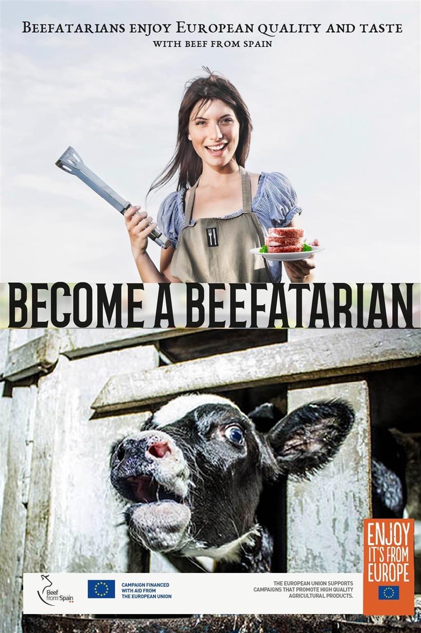 Θύελλα αντιδράσεων έχει προκαλέσει η αμφιλεγόμενη διαφημιστική καμπάνια, περισσότερο από το 80% της οποίας θα καλύψει οικονομικά η ΕΕ, με την οποία καλεί τους Ευρωπαίους να γίνουν beefatarian! Πρόκειται να δαπανηθούν πάνω από 3,6 εκατομμύρια ευρώ επί τρία χρόνια με πρωτεργάτες στη διαφήμιση την ισπανική PROVACUNO και τη βελγική ΑPAQ-W, οι οποίες προσπαθούν να εδραιώσουν τη θέση του βοδινού στις αγορές της Ισπανίας, της Πορτογαλίας, της Γαλλίας, του Βελγίου και της Γερμανίας.