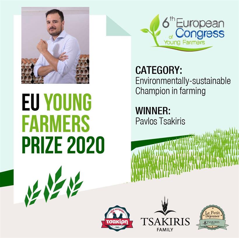 Η βράβευση μου ως Καλύτερο Νέο Ευρωπαίο Αγρότη για το 2020 στον τομέα της Περιβαλλοντικά Βιώσιμης Γεωργίας αποτελεί μεγάλη τιμή, τόσο για εμένα όσο και για τη μεγάλη οικογένεια της Tsakiris Family.