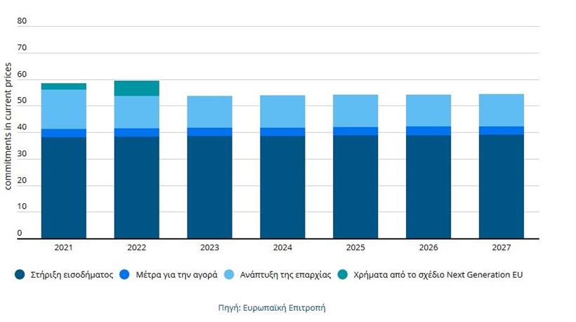 - Διασφαλίζει την σταθερότητα του εισοδήματος των αγροτών μέσω άμεσων πληρωμών.