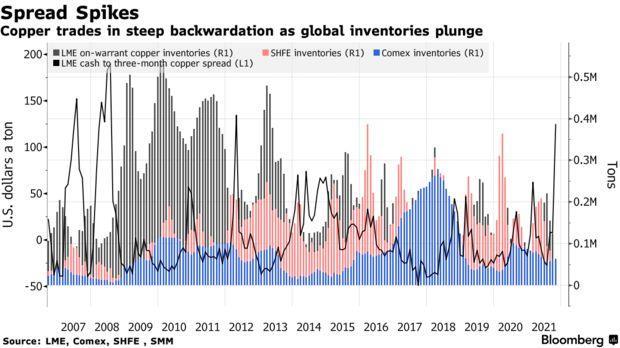 Την ίδια ώρα, με την ανάκαμψη της παγκόσμιας οικονομίας να βρίσκεται σε πλήρη εξέλιξη, η ζήτηση για μέταλλα και ενέργεια είναι η υψηλότερη των τελευταίων δύο ετών, επιτείνοντας τις πιέσεις στο ισοζύγιο προσφοράς – ζήτησης και ωθώντας προς τα ύψη τις τιμές.