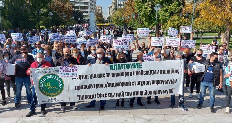 Σε εξέλιξη βρίσκεται αυτή την ώρα στην Αθήνα το συλλαλητήριο των σταφιδοπαραγωγών, οι οποίοι ζητούν στήριξη από το Υπουργείο Αγροτικής Ανάπτυξης για το προϊόν τους, που η τιμή του έχει κατρακυλήσει.