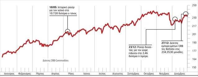 Η άρση των lockdowns, οι ποταμοί ρευστότητας που έριξαν στην αγορά τα δημοσιονομικά και νομισματικά προγράμματα στήριξης και η εφοδιαστική κρίση ήταν οι βασικοί παράγοντες που οδήγησαν σε ράλι τις τιμές των εμπορευμάτων το 2021.