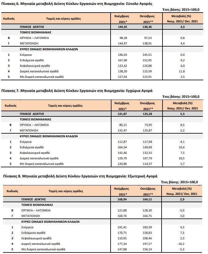 Την ίδια ώρα, ο δείκτης κύκλου εργασιών εξωτερικής αγοράς εμφάνισε άλμα 51,6%, ενώ ο δείκτης κύκλου εργασιών εγχώριας αγοράς σημείωσε αύξηση 32,4%.