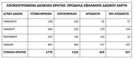 Κατά τη διαδικασία αναμόρφωσης του δασικού χάρτη και εξέτασης αιτημάτων πολιτών για συμπερίληψη προδήλων σφαλμάτων και διόρθωση του χάρτη, οι Δασικές Υπηρεσίες έλεγξαν περισσότερες από χίλιες υποθέσεις και ενέκριναν ποσοστό 55% εξ' αυτών. Ήδη δηλαδή, 625 τουλάχιστον αιτήματα πολιτών ευοδώθηκαν και τα αντίστοιχα πολύγωνα διορθώθηκαν στο Δασικό Χάρτη. Επιπλέον οι Διευθύνσεις Δασών, στο πλαίσιο της αναμόρφωσης και της θέσης σε ισχύ νέων νομοθετικών διατάξεων, προβαίνουν στην αυτεπάγγελτη διόρθωση προδήλων όπου αυτό είναι εφικτό και σύμφωνα με τη στελεχιακή δυναμικότητα ανταπόκρισης κάθε υπηρεσιακής μονάδας.