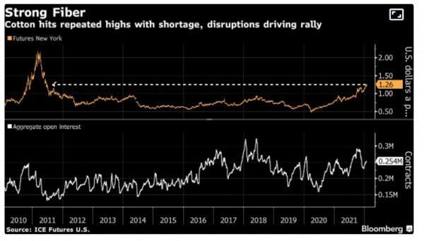 Οι εξαγωγές αμερικανικού βαμβακιού έκαναν άλμα ξανά την περασμένη εβδομάδα, καθώς αυξήθηκε η ζήτηση από Ασιάτες αγοραστές. Οι διαταραχές στην εφοδιαστική αλυσίδα και η εκτίναξη του κόστους ώθησαν τον κλάδο να μειώσει τα αποθέματα.