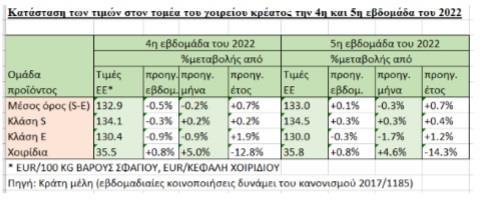 Όσον αφορά στις τιμές των σφαγίων χοίρων στην ΕΕ, υπήρξαν μικρές μόνο αλλαγές προς τις δύο κατευθύνσεις μετά την ελαφρά αύξηση που παρατηρήθηκε στα μέσα Δεκεμβρίου του 2021. Οι τιμές των χοιριδίων αυξήθηκαν ελαφρώς, σύμφωνα με την εποχική τάση, αλλά παραμένουν κατά 13-14 % χαμηλότερες από ό,τι πριν από ένα έτος.