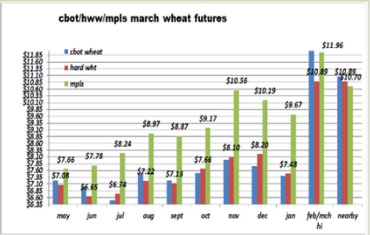 Αναμένουμε ότι τα συμβόλαια μελλοντικής εκπλήρωσης του σίτου του Κάνσας Σίτι θα περιοριστούν στο καλαμπόκι . Οι τιμές παράδοσης στον προορισμό θα πρέπει να αυξηθούν, αλλά η διεξαγωγή προέλευσης θα είναι επαρκής για να συνεχιστούν οι εξαγωγές.