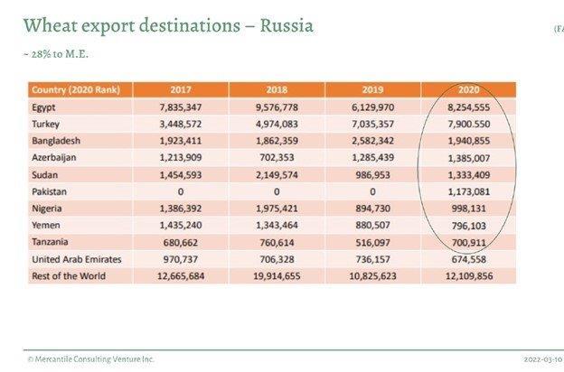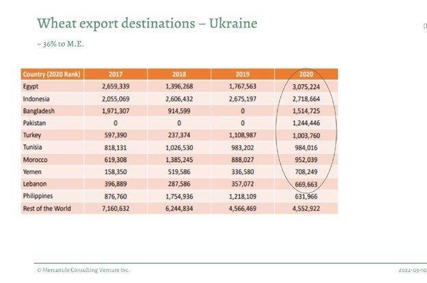 Είναι σημαντικό να κατανοήσουμε ότι το φθηνότερο- ευκολότερα διαθέσιμο σιτάρι στη Μέση Ανατολή και την Ασία έχει ως επί το πλείστον αποσυρθεί από την αγορά προς το παρόν (αν και η Ρωσία λέει ότι θα συνεχίσει να αποστέλλει). Ορισμένες χώρες έχουν θέσει σε εφαρμογή απαγορεύσεις εξαγωγών (Ουγγαρία, Σερβία, Τουρκία, Μολδαβία, Αίγυπτος). Αυτό δεν θα επηρεάσει τον όγκο των εξαγωγών, αλλά έχει σχεδιαστεί για την καταπολέμηση του πληθωρισμού των τιμών των τροφίμων στο εσωτερικό. Εν τω μεταξύ, η Αίγυπτος και η Αλγερία αναγκάστηκαν να επιστρέψουν στο γαλλικό σιτάρι και οι Ασιάτες αγοραστές στρέφονται στην Ινδία για να αγοράσουν σιτάρι.