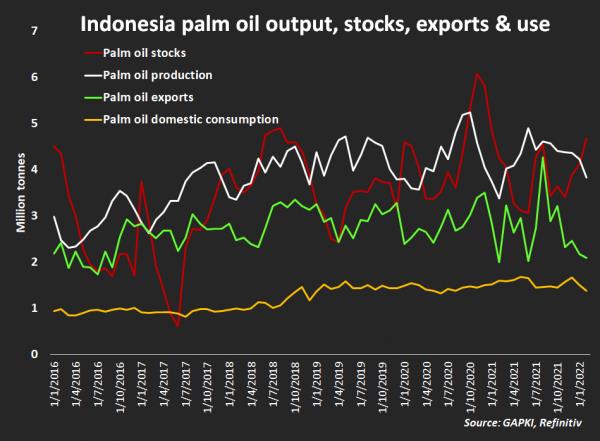 Η Ινδονησία παράγει περίπου 4 εκατομμύρια τόνους φοινικέλαιου κάθε μήνα και καταναλώνει περίπου 1,5 εκατομμύρια τόνους.