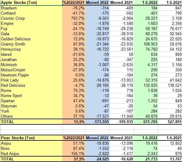 Η WAPA, η Παγκόσμια Ένωση Μήλων και Αχλαδιών, δημοσίευσε τα στοιχεία για τα αποθέματα μήλων και αχλαδιών από την 1η Ιουνίου 2022.
