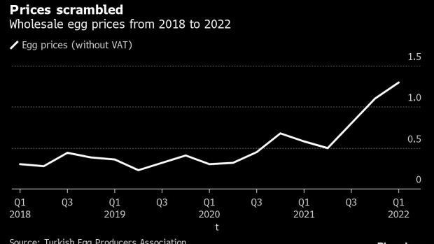 Η Τουρκία παρήγαγε περίπου 20 δισεκατομμύρια αυγά το 2019, σύμφωνα με το Υπουργείο Γεωργίας των ΗΠΑ, αλλά η αύξηση του κόστους των ζωοτροφών σημαίνει ότι η παραγωγή ήταν ήδη στάσιμη πριν η εισβολή της Ρωσίας στην Ουκρανία αναταράξει τις αγορές σιτηρών. Οι αγρότες εισάγουν επίσης αυγά επώασης και νεοσσούς μιας ημέρας. έχουν ανέβει και οι τιμές τους.