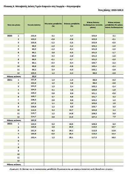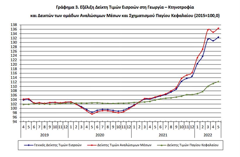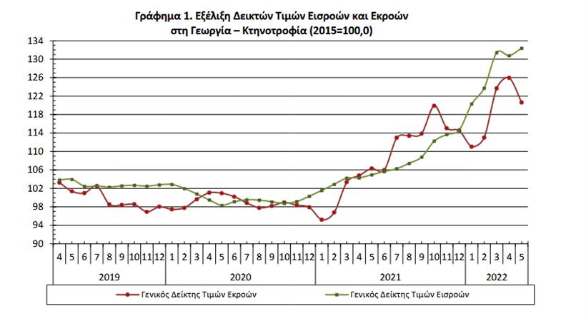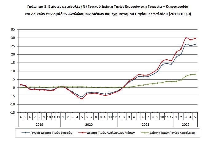 Η αύξηση του Γενικού Δείκτη Τιμών Εισροών κατά 26,1%, τον μήνα Μάιο 2022, σε σύγκριση με τον αντίστοιχο δείκτη