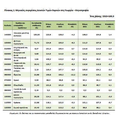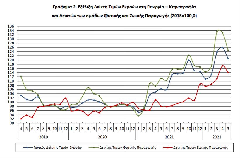 Ο Γενικός Δείκτης Τιμών Εκροών στη Γεωργία – Κτηνοτροφία (χωρίς επιδοτήσεις) του μηνός Μαΐου 2022, σε σύγκριση
