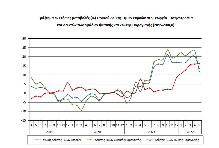 Η αύξηση του Γενικού Δείκτη Τιμών Εκροών κατά 13,5%, τον μήνα Μάιο 2022, σε σύγκριση με τον αντίστοιχο δείκτη