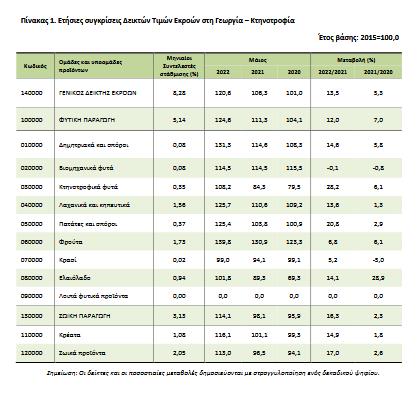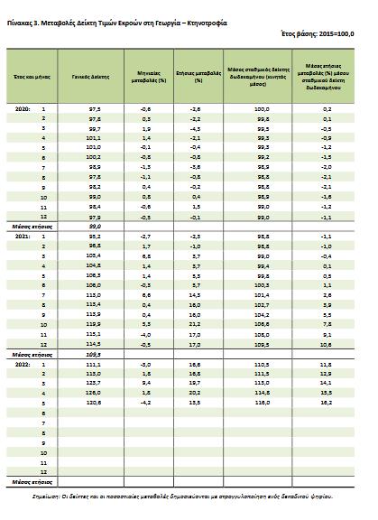 κυρίως στη μεταβολή της ομάδας λαχανικά και κηπευτικά, και β) στην αύξηση κατά 16,3% του δείκτη τιμών της ζωικής