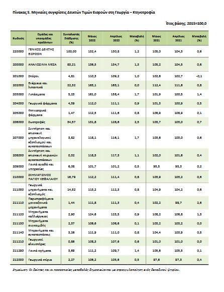 Ο Γενικός Δείκτης Τιμών Εισροών στη Γεωργία – Κτηνοτροφία του μηνός Μαΐου 2022, σε σύγκριση με τον αντίστοιχο