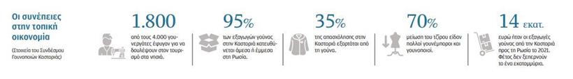 «Φέτος έφυγαν για να δουλέψουν σεζόν στα νησιά 1.800 [από τους 4.000] τεχνίτες. Αυτό δεν έχει ξαναγίνει ποτέ», δηλώνει στην Καθημερινή ο Ακης Τσούκας, πρόεδρος του Συνδέσμου Γουνοποιών Καστοριάς, μιλώντας για μια πρωτόγνωρη κρίση.