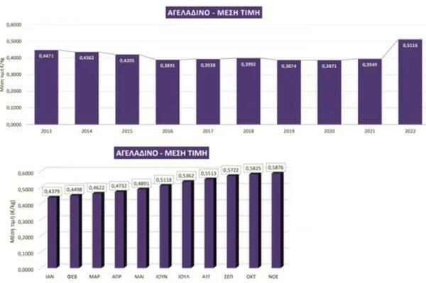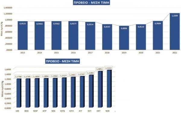 Ανέφερε χαρακτηριστικά ότι "στο πρόβειο γάλα, οι τιμές που αγοράζουμε, από τα επίπεδα των €1,25 - €1,27/ κιλό το 2021, ανέβηκαν στο €1,67".