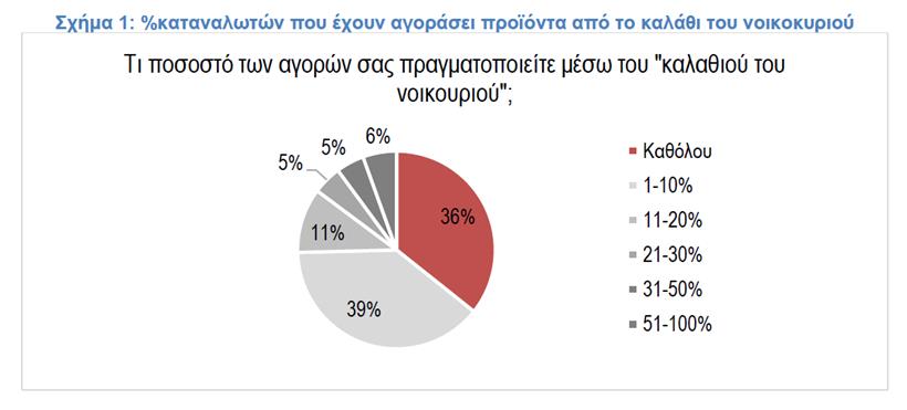 Σχήμα 1: %καταναλωτών που έχουν αγοράσει προϊόντα από το καλάθι του νοικοκυριού