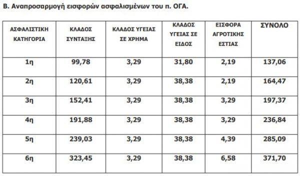 Παρακάτω ακολουθεί αναλυτικός πίνακας με την αναπροσαρμογή των εισφορών των ασφαλισμένων αγροτών του π. ΟΓΑ:
