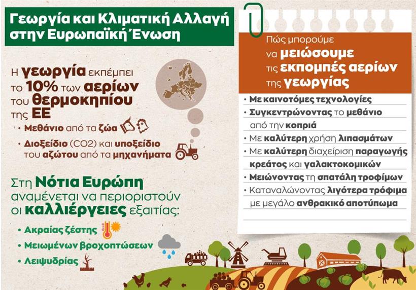 Τα στοιχεία που περιγράφουν πώς επηρεάζεται η κλιματική αλλαγή από τη γεωργική δραστηριότητα είναι ενδεικτικά: