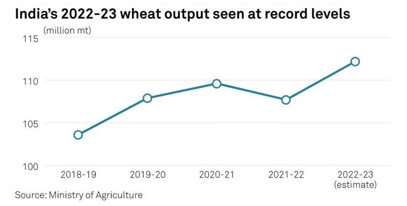 Οι συμμετέχοντες στην αγορά είναι, ωστόσο, δύσπιστοι σχετικά με την εκτίμηση της σοδειάς του σιταριού της Ινδίας. Σύμφωνα με έρευνα της S&P Global σε 11 αναλυτές και εμπόρους, η σοδειά σιταριού στην Ινδία αναμένεται να φτάσει τα 107-108 εκατομμύρια τόνους το 2022-2023.
