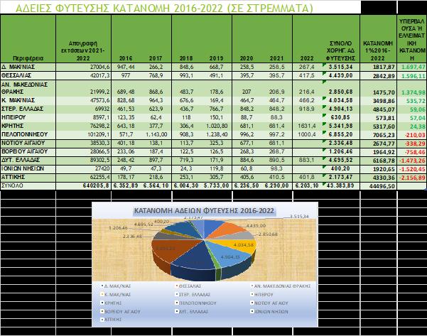 Να επισημάνουμε ότι σε αρκετές Περιφέρειες που εμφανίζουν, μειωμένη χορήγηση εκτάσεων, αυτή οφείλεται σε αιτήματα που η αιτούμενη έκταση νέων φυτεύσεων είναι μικρότερη από αυτήν που αναλογεί στην Περιφέρεια, βάσει του 1% της φυτεμένης σε αυτή έκτασης με αμπέλια.