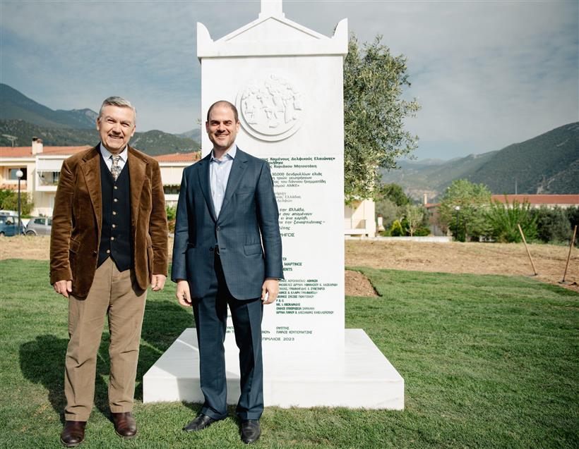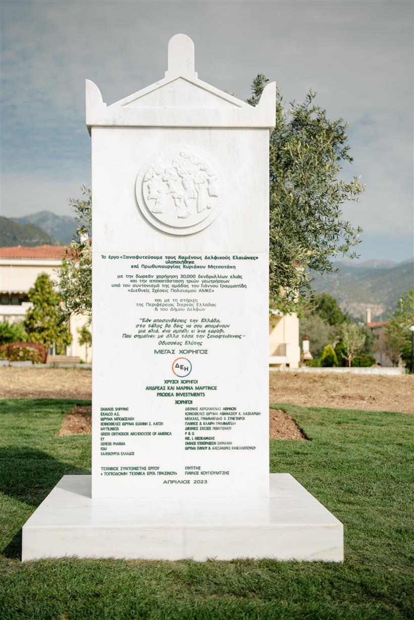 Το όνομα του Ομίλου Επιχειρήσεων Σαρακάκη, μαζί με τα ονόματα των υπόλοιπων χορηγών, θα βρίσκεται χαραγμένο στην αναμνηστική μαρμάρινη στήλη στο πάρκο Ελιάς στην είσοδο της πόλης της Άμφισσας.