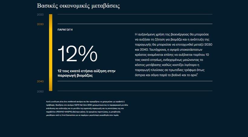 Από την πλευρά της ζήτησης, η αλλαγή του τι τρώνε οι άνθρωποι μπορεί να διαρκέσει περισσότερο και να απαιτήσει νέους μηχανισμούς που ανταμείβουν τους αγρότες και τους καταναλωτές για την υιοθέτηση πρακτικών χαμηλότερων εκπομπών.Για περισσότερα σχετικά με τον τρόπο μετάβασης οκτώ βιομηχανιών σε ένα σενάριο μηδενικού καθαρού 2050, ανατρέξτε στην ενότητα " Εντοπισμός πράσινων επιχειρηματικών ευκαιριών σε έναν αυξανόμενο κόσμο με μηδενικό καθαρό ".