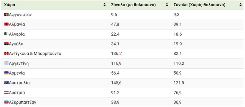 Για να λάβουμε υπόψη και τις δύο πλευρές της συζήτησης, θα καλύψουμε την κατανάλωση κρέατος ανά χώρα τόσο με όσο και χωρίς ψάρι και θαλασσινά.