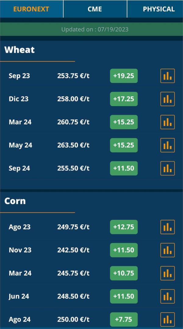 Χθες στο Euronext, σημειώθηκαν σημαντικές αυξήσεις στα συμβόλαια μελλοντικής εκπλήρωσης σιταριού και καλαμποκιού.