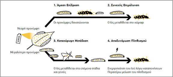 4. Αποδυνάμωση Πληθυσμού ( έξαρση του Ιού όταν οι προνύμφες επόμενων γενιών βρεθούν σε συνθήκες καταπόνησης)