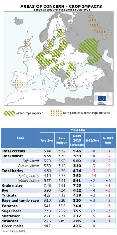 Κύριος λόγος για τη επιδείνωση των αποδόσεων είναι οι πιο ξηρές συνθήκες που επικρατούν, για περισσότερο από ένα μήνα, σε μεγάλο μέρος της δυτικής, κεντρικής και βόρειας Ευρώπης αλλά και στην ανατολική Ρουμανία.
