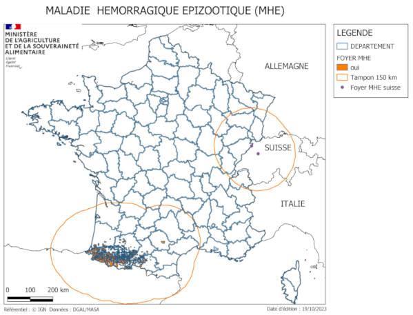 Τα πρώτα κρούσματα επιζωοτίας αιμορραγικής νόσου ανακοινώθηκαν στη Γαλλία το Σεπτέμβριο του 2023 σε κτηνοτροφικές εκμεταλλεύσεις στα νοτιοδυτικά. Αυτή η μολυσματική ασθένεια που προκαλείται από έναν ιό ο οποίος μεταδίδεται αποκλειστικά από κουνούπια, όπως αυτά του καταρροϊκού πυρετού. Η ανίχνευση εστιών επιζωοτίας αιμορραγικής νόσου συνεπάγεται την υιοθέτηση ειδικών μέτρων ελέγχου και πρόληψης σε ακτίνα 150 χλμ γύρω από τις εστίες.