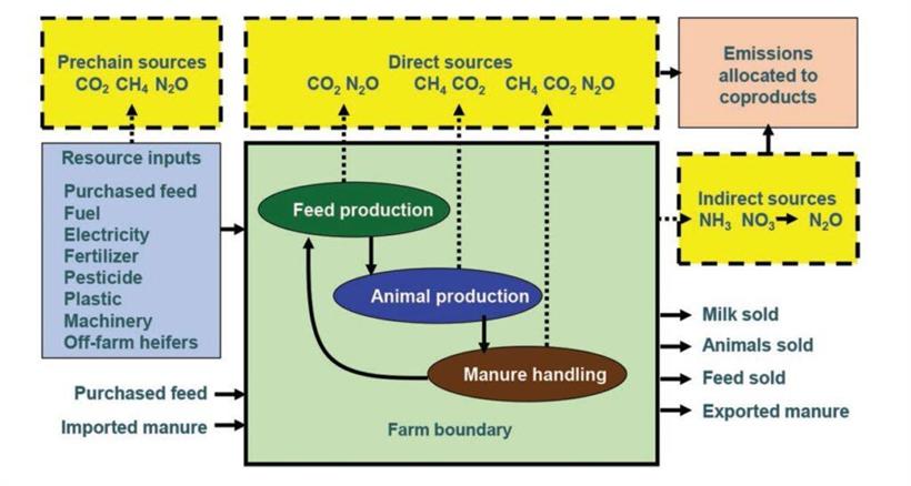 Το ανθρακικό αποτύπωμα μετριέται σαν ημερολογιακή αναφορά , συνολικά, για το σύστημα αναφοράς (φάρμα – παραγωγή ζωοτροφών – διαχείριση φάρμας – ζώα).