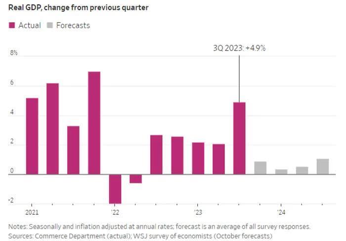 Η έκθεση για το ακαθάριστο εγχώριο προϊόν της περασμένης εβδομάδας για τις ΗΠΑ έδειξε ότι η οικονομική ανάπτυξη του τρίτου τριμήνου καταγράφηκε στο 4,9% - υπερδιπλάσιος ρυθμός ανάπτυξης σε σχέση με το προηγούμενο τρίμηνο και η υψηλότερη ανάπτυξη που σημείωσε η οικονομία από το τέταρτο τρίμηνο του 2021.