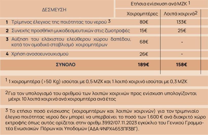 Με το ποσό των 189 ευρώ ανά χοιρομητέρα και 158 για τα λοιπά χοιρινά θα ενισχυθούν ετησίως οι κτηνοτρόφοι, που θα ενταχθούν στο μέτρο για «Καλή μεταχείριση των χοίρων ενσταβλισμένης εκτροφής», του ΠΑΑ ύψους 28,5 εκατ. ευρώ.