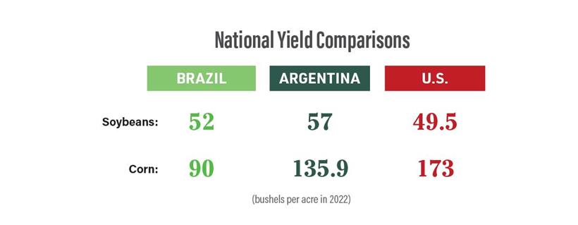 4. Ενώ οι μέσες αποδόσεις καλαμποκιού είναι χαμηλότερες στη Νότια Αμερική σε σχέση με τις ΗΠΑ, αυξάνονται σταθερά.