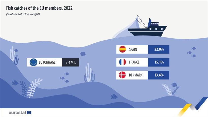 Σύμφωνα με τα στοιχεία της Eurostat, ο αλιευτικός στόλος της Ισπανίας ξεπέρασε το ένα πέμπτο του συνόλου των αλιευμάτων της ΕΕ (22% – 752.000 τόνοι), ακολουθούμενη από τη Γαλλία (15% – 517.000 τόνους) και τη Δανία (13% – 459.000 τόνους).