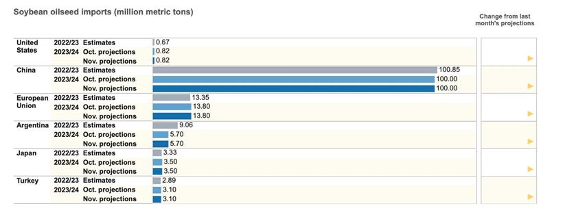 Την εβδομάδα που έληξε στις 9 Νοεμβρίου, οι εξαγωγείς των ΗΠΑ πούλησαν 3,92 εκατομμύρια μετρικούς τόνους σόγιας για αποστολή το 2023-24, το οποίο ξεκίνησε την 1η Σεπτεμβρίου.