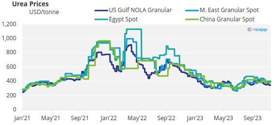 Από την άλλη πλευρά, οι προοπτικές για την τιμή της ουρίας είναι πτωτικές με την συνεχιζόμενη έλλειψη ζήτησης από τις μεγάλες αγορές της Βραζιλίας, των ΗΠΑ και της Ευρώπης.