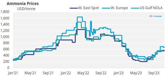 Οι τιμές της αμμωνίας φαίνονται πτωτικές για το υπόλοιπο του έτους έως το πρώτο τρίμηνο του 2024. Αυτή την εβδομάδα, η παγκόσμια αγορά αμμωνίας σταμάτησε με τους αγοραστές να διστάζουν να δεσμευτούν με την προσδοκία χαμηλότερων τιμών λόγω της αύξησης των προμηθειών. Δεν αναφέρθηκαν συμφωνίες spot αυτή την εβδομάδα.