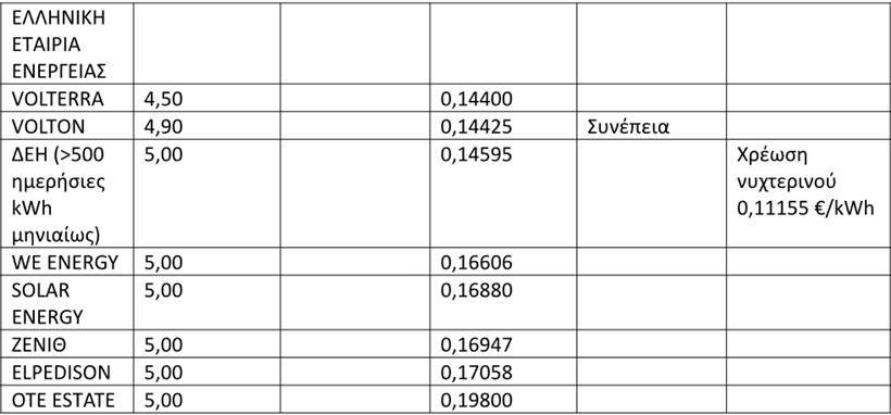 * PROTERGIA με 0,14260 ευρώ/kWh κ.λπ.,
