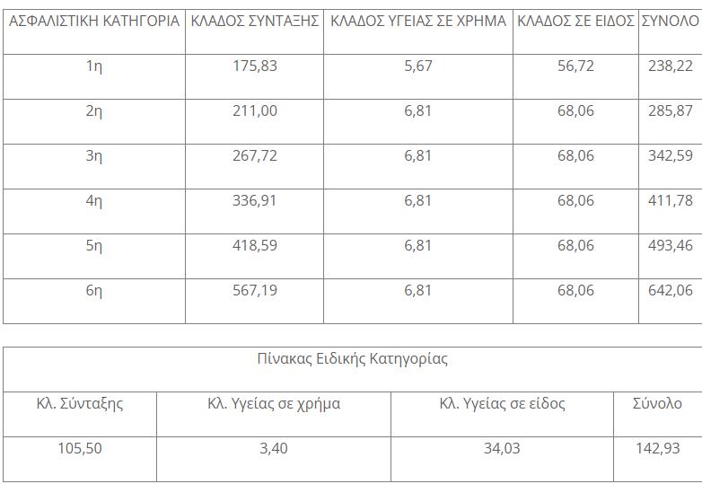 Ασφαλιστικές Κατηγορίες Ποσό εισφοράς (€)