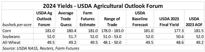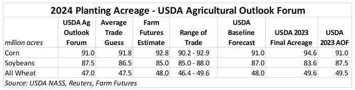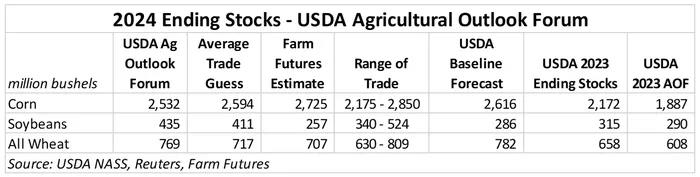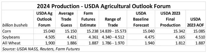 Το 100ο ετήσιο Φόρουμ Γεωργικών Προοπτικών του Αμερικανικού Υπουργείου Γεωργίας (USDA) παρείχε μια πιο προσεκτική ματιά στις προσδοκίες για τις προοπτικές παραγωγής του 2024 για τους Αμερικανούς αγρότες και τα αποτελέσματα αφομοιώθηκαν με ανυπομονησία από την αγορά, η οποία περίμενε περαιτέρω θεμελιώδεις πληροφορίες για να υπαγορεύσει την κατεύθυνση των τιμών, σε μια εποχή που οι τιμές των βασικών εμπορευμάτων βρίσκονται σε πτώση.