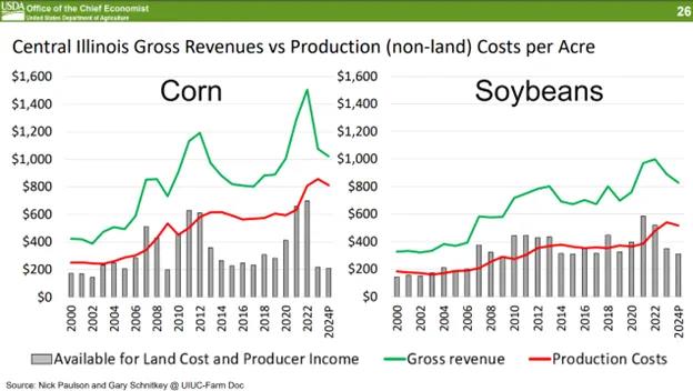 Και δυστυχώς για τους αγρότες - οι οποίοι υπέστησαν μια πτώση 38% στις κοντινές προθεσμιακές τιμές του καλαμποκιού (2,56 δολάρια/μπούσελ) και μια πτώση 30% στα κοντινά συμβόλαια σόγιας (3,56 δολάρια/μπούσελ) - τα περιθώρια κέρδους είναι πιθανό να παραμείνουν στενά καθ' όλη τη διάρκεια της επερχόμενης καλλιεργητικής περιόδου.
