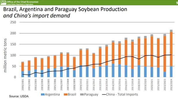 Η παραγωγή σόγιας προβλέπεται σε νέο υψηλό ρεκόρ των 4,505 δισεκατομμυρίων μπούσελ, το οποίο αν πραγματοποιηθεί θα ξεπεράσει το σημερινό υψηλό των 4,464 δισεκατομμυρίων μπούσελ που σημειώθηκε το 2021.
