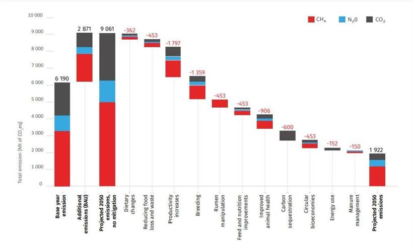 Εάν οι βελτιώσεις αυτές εφαρμοστούν από κοινού, ο κτηνοτροφικός τομέας θα μπορούσε να μειώσει σημαντικά τις εκπομπές (εκτιμάται ότι θα μειωθούν έως και κατά 50%) και, ταυτόχρονα, να καλύψει τη ζήτηση ζωικών προϊόντων που αναμένεται για το 2050.