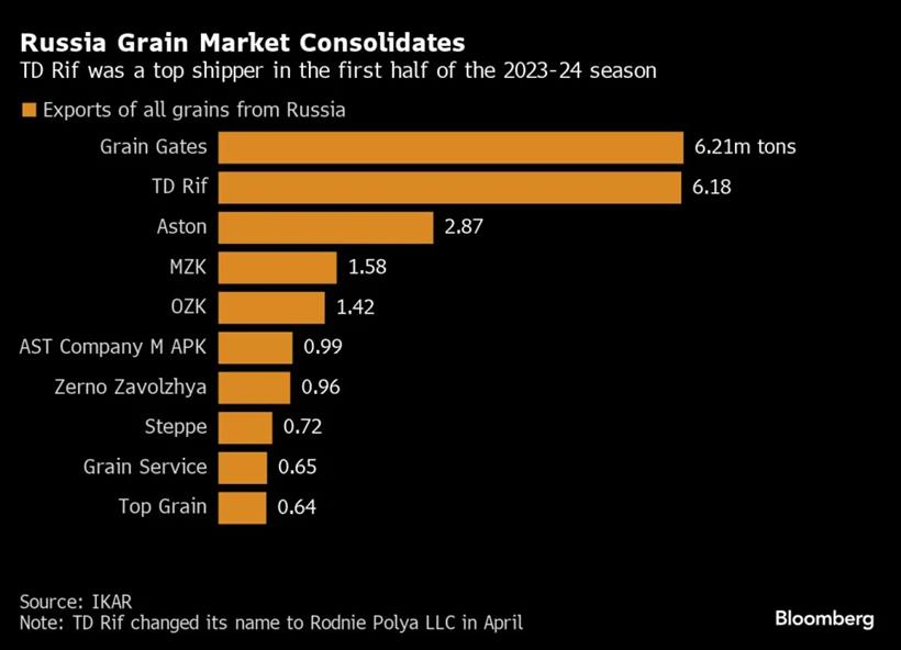Η ενοποίηση επιταχύνθηκε μετά τη στρατιωτική επιχείρηση στην Ουκρανία και αφήνει μόνο τέσσερις εταιρείες υπεύθυνες για τα τρία τέταρτα των εξαγωγών σιτηρών από τους τερματικούς σταθμούς της Μαύρης Θάλασσας της Ρωσίας.