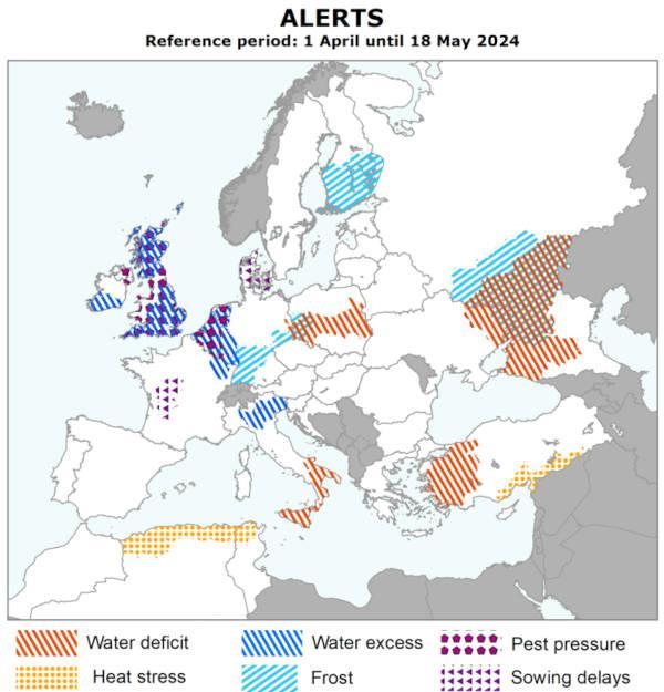 Στην ανατολική Γερμανία και στη Πολωνία, τα ελλείμματα νερού άρχισαν να φαίνονται. Σύμφωνα με το δελτίο Mars, απαιτείται περισσότερη βροχή για να διατηρηθεί η μέχρι στιγμής θετική προοπτική. Οι θερμές και ξηρές συνθήκες στη νότια Ιταλία επηρέασαν αρνητικά την πλήρωση των σιτηρών των χειμερινών καλλιεργειών.